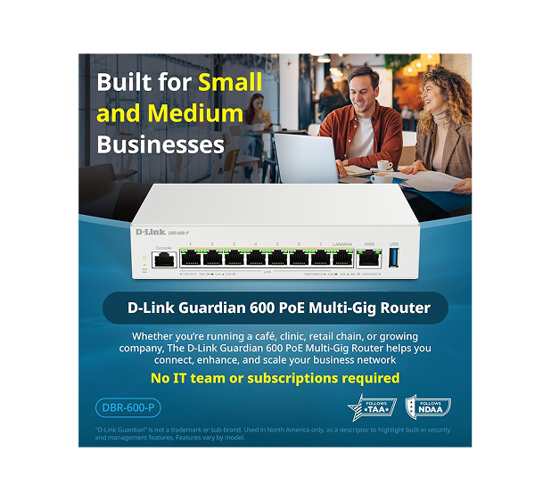 This high-performance business router is built to deliver enterprise-grade security and control without complicated setup or technical overhead. Designed to support growing networks, it makes it easy for small and medium-sized businesses to deploy secure, high-speed connectivity with centralized management tools, built-in VPN capabilities, and PoE support — all without the need for an in-house IT team or recurring subscriptions.
