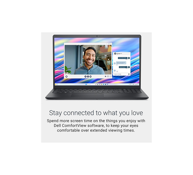 To enhance visual comfort, the laptop features Dell ComfortView technology, which helps minimize harmful blue light emissions. This makes longer screen sessions — studying, streaming, working, or browsing — easier on the eyes and more enjoyable overall.