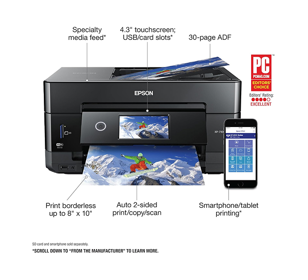 This wireless photo printer is built to deliver exceptional color performance and long-lasting reliability. Engineered exclusively for use with genuine Epson ink cartridges, it ensures optimal print quality and protects the device from potential damage caused by non-genuine inks. This helps maintain the longevity of the printer while keeping print output consistently sharp and vibrant.