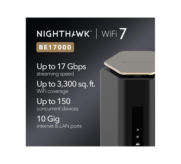 This high-performance WiFi 7 router is built for users who want the fastest and most reliable wireless experience available today. With speeds reaching up to 17 Gbps, it effortlessly handles real-time online gaming, smooth 4K and 8K streaming, ultra-clear video conferencing, and next-generation AR/VR applications. Its advanced capabilities are paired with a simple setup process through the Nighthawk App, allowing you to get online quickly without technical difficulty.